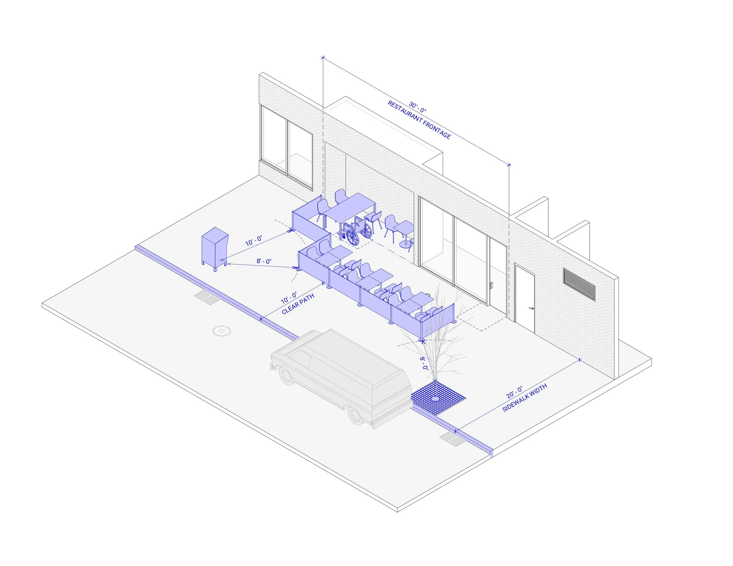 *This is our service fee for the completed Site Plan Form and does not apply towards any application fees, license fees, security deposits, revocable consent fees, or other costs. A completed Site Plan Form does not guarantee application approval. It is the responsibility of the restaurant to submit their application directly with the NYC DOT. Phantom Design Studio is not an Authorized Representative.